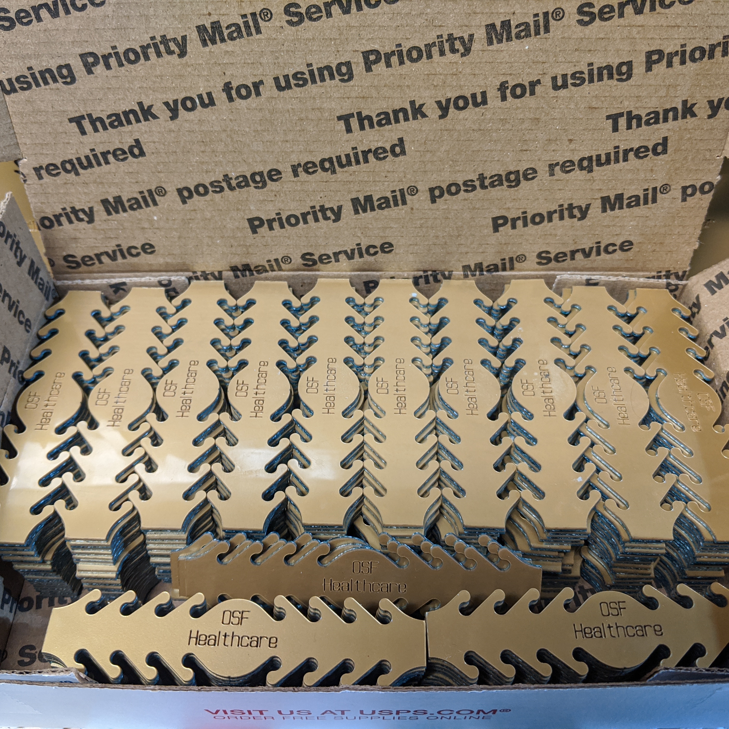 In case you're interested in what we did while in self-isolation, the pictures below are laser cut acrylic earsavers we worked on in conjunction with volunteers all over the world and facilitated by our laser's manufacturer. For people wearing masks all day, the elastics can irritate their ears until they are raw and abraded. The earsaver just slips in between the ends and pulls the elastic away. They conform to the shape of the head and they can be sterilized with normal disinfectants. We cut, boxed and donated 10,730 of them to front line workers primarily in healthcare and local first responders. We connected with facilities as far away as Cedar-Sinai Medical Center in California and as close as Hartford Hospital's transplant unit down the road. From medical staff, USPS clerks, bakery workers and most recently a casino in the Midwest who just began their own reopening.