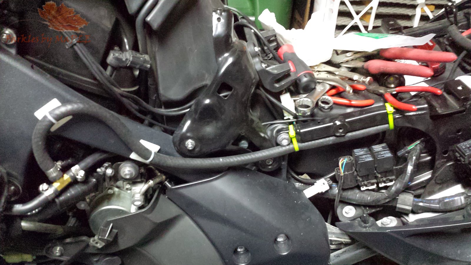 Here are a couple of examples of how the fuel line is routed on the Triumph Trophy SE.