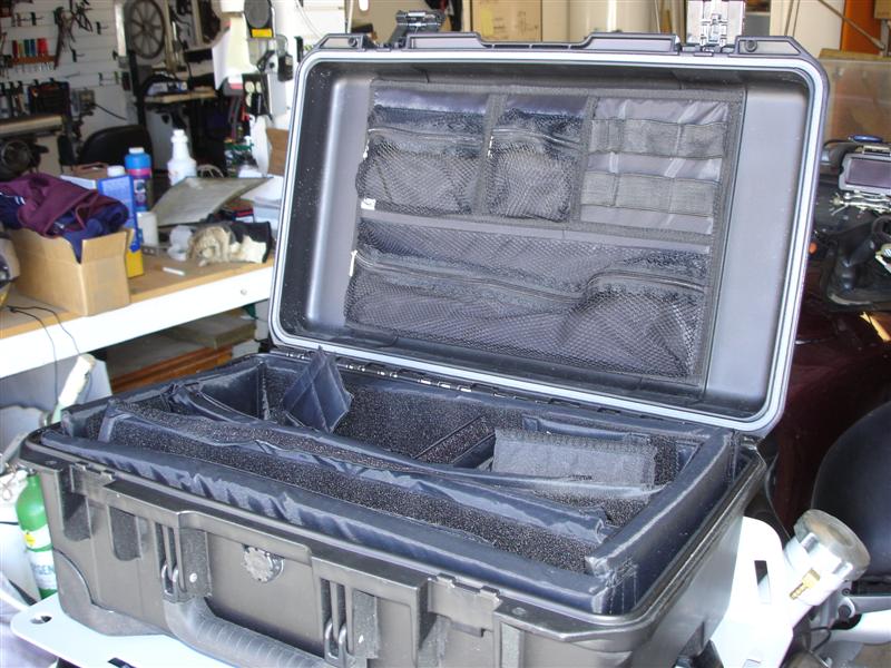 - Storm Case with quick release mechanism - This luggage option uses a PELICAN STORM HARDIGG IM2500 watertight case. (You can google to get details). We have been using one for over 3 years and love it. We chose this particular model due to the fact that it provides ample storage, meets airline carry-on regulations, and it readily accepts our quick disconnect mechanism. This case may be purchased from us or a vendor of your choice but we need to have the case at our location to make the quick connect modification. The price of the case is our cost plus shipping.{phocagallery view=category|categoryid=4|imageid=63|detail=6|displayname=0|displaydetail=0|displaybuttons=0|displaydescription=0|displaydownload=0 |displayimgrating=0}
